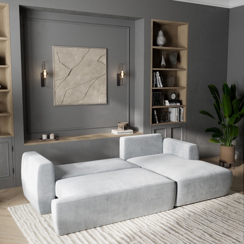 Masseno Ecksofa SENTI mit Schlaffunktion und Bettkasten, Ausziehbares Bettsofa - Hellgrau, PAROS 05