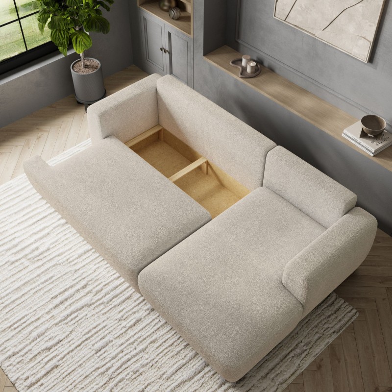 Masseno Ecksofa SENTI mit Schlaffunktion und Bettkasten, Ausziehbares Bettsofa - Creme, NOW OR NEVER 02