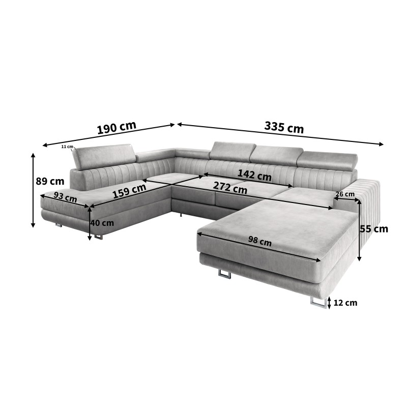 - Das Ecksofa ist mit einer 5-fach verstellbaren Kopfstütze ausgestattet, die es ermöglicht, den Neigungswinkel individuell an deine Bedürfnisse anzupassen. So genießt du maximalen Komfort – beim Lesen, Fernsehen oder Entspannen nach einem langen Tag.