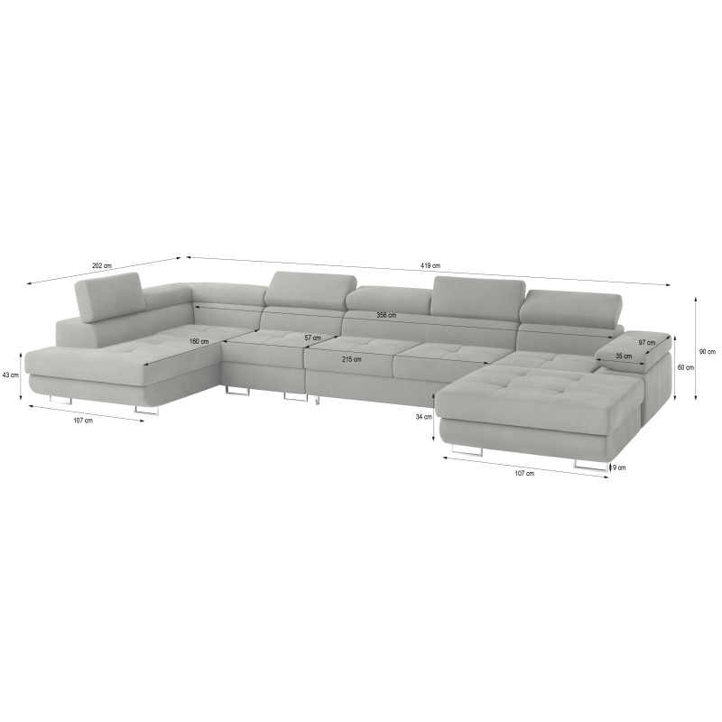 - Das Ecksofa ist mit einer 5-fach verstellbaren Kopfstütze ausgestattet, die es ermöglicht, den Neigungswinkel individuell an deine Bedürfnisse anzupassen. So genießt du maximalen Komfort – beim Lesen, Fernsehen oder Entspannen nach einem langen Tag.