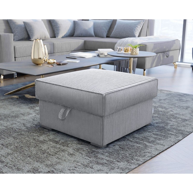 Bequemes und stilvolles FERA-Pouffe, integrierter Stauraum, gepolstert mit hellgrauem Kord