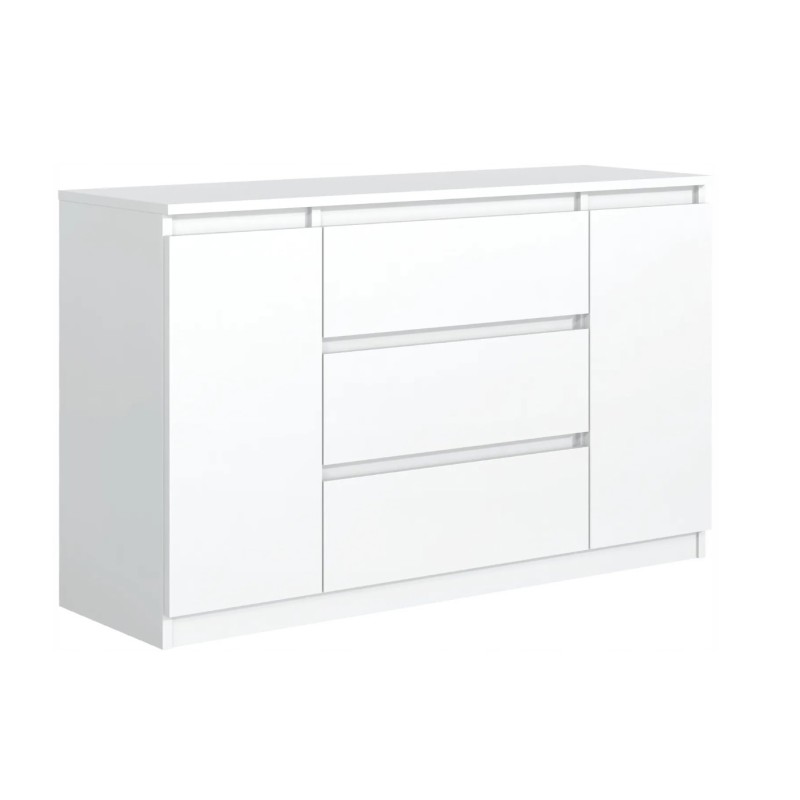 Masseno Kommode LUMINO 140 cm Sideboard mit 3 Schubladen und 2 Türen für Wohnzimmer Schlafzimmer Modern 140x33x77 cm Weiß / Weiß