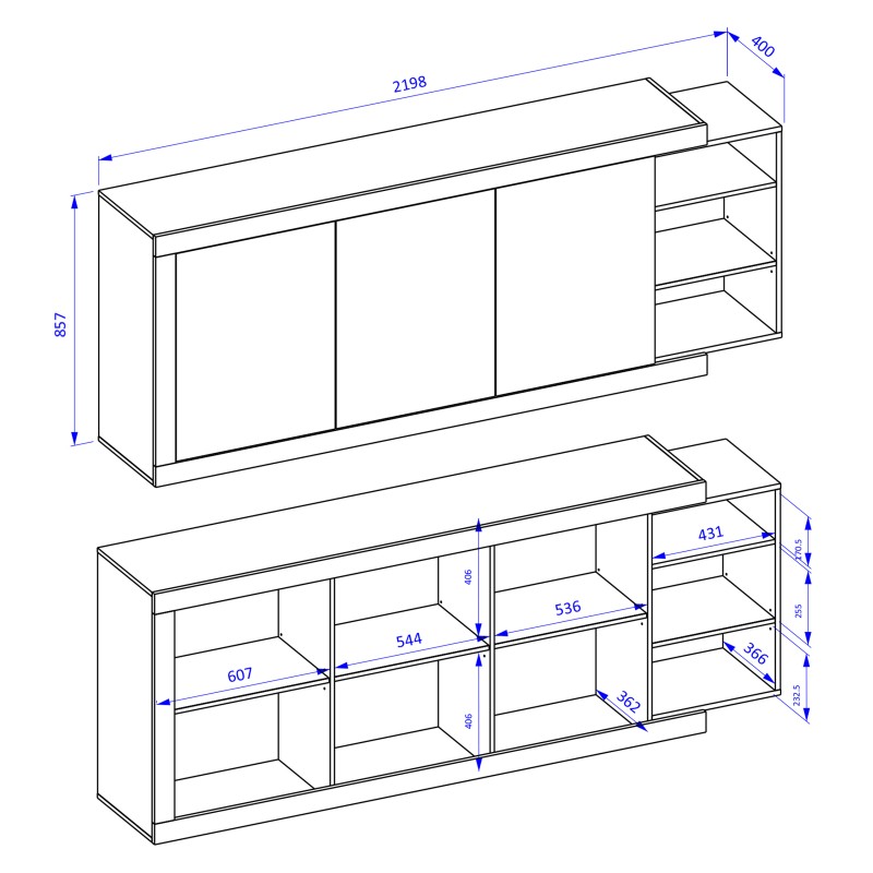 Dank ihres modernen Designs und der sorgfältig durchdachten Details fügt sich dieses Modell perfekt in die neuesten Einrichtungstrends ein und ist gleichzeitig so universell, dass es sich sowohl an skandinavische Arrangements als auch an warme, klassische Wohnstile leicht anpassen lässt. Es ist der zentrale Punkt, der Ihren Raum organisiert und ihm eine einzigartige Eleganz und Harmonie verleiht.