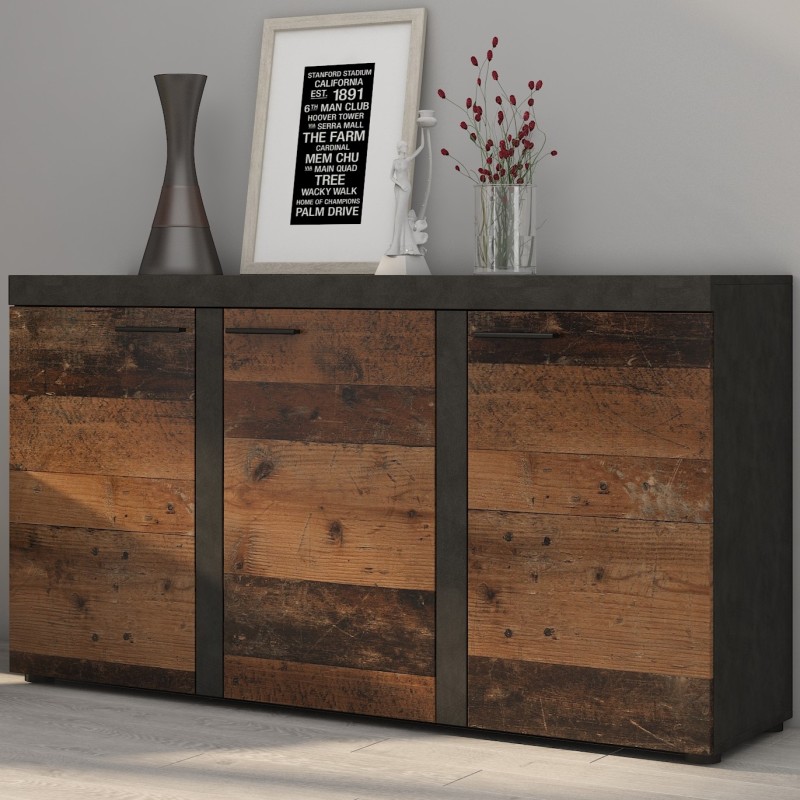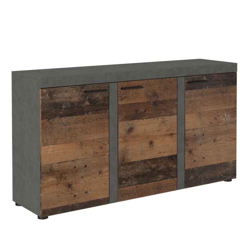 Masseno Kommode RITMO 149 cm Sideboard und 3 Türen für Wohnzimmer Schlafzimmer Modern 149x40x82 cm Hellgrau / Braun
