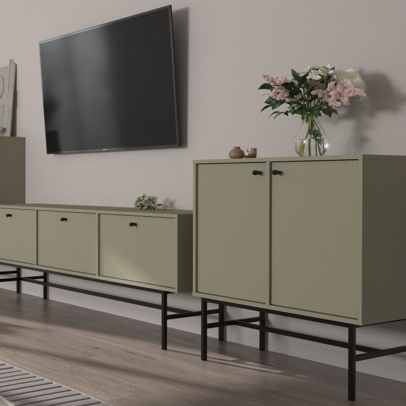 Masseno Kommode TORINO 84 cm Sideboard und 2 Türen für Wohnzimmer Schlafzimmer Modern 84x41x86 cm Hellgrün / Hellgrün