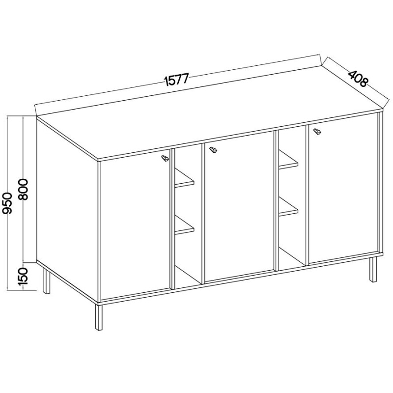 Masseno Kommode TORINO 158 cm Sideboard mit 3 Türen für Wohnzimmer Schlafzimmer Modern 158x41x95 cm Hellgrün / Hellgrün