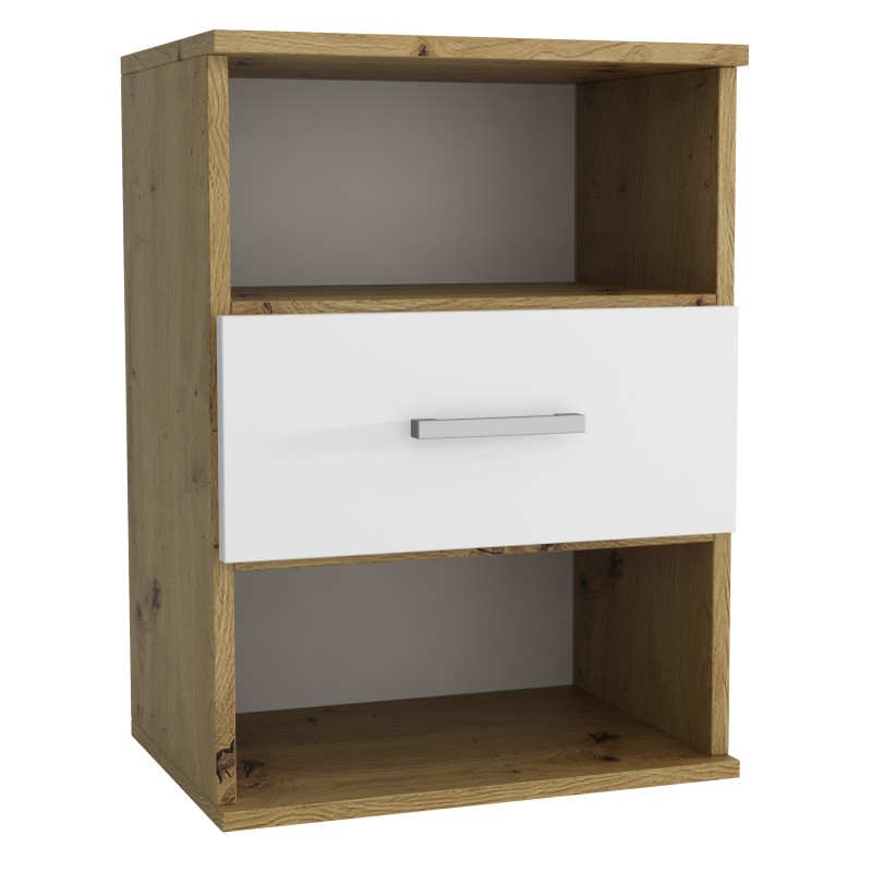Die optimalen Maße des Nachttisches wurden so gewählt, dass er sich auch in kleinen Schlafzimmern aufstellen lässt, ohne den Raum zu überladen. Sie können ihn problemlos an Ihr Bett anpassen, wobei die volle Funktionalität und Ästhetik erhalten bleibt. Sie gewinnen viel Stauraum, ohne wertvolle Quadratmeter zu verlieren!