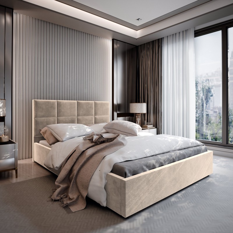 Das Polsterbett LIMENA ist die perfekte Verbindung aus modernem Design und durchdachter Funktionalität. Seine markante, aber harmonische Form wird sofort zum Mittelpunkt Ihres Schlafzimmers und erhöht dessen ästhetischen Standard. Dieses Möbelstück wurde für alle kreiert, die zeitlose Eleganz schätzen und ihr Schlafzimmer in eine Oase der Ruhe und des guten Geschmacks verwandeln möchten.