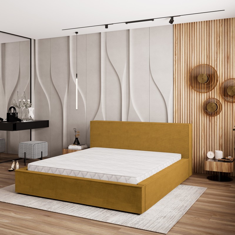 Masseno Polsterbett CELORA 140x200 cm, Polsterbett mit Bettkästen -Gelb, POSO 01