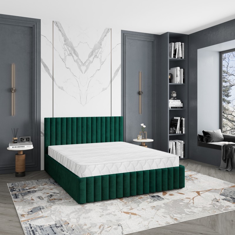 Masseno Polsterbett CARMIA 140x200 cm, Polsterbett mit Bettkästen -Grün, KRONOS 19