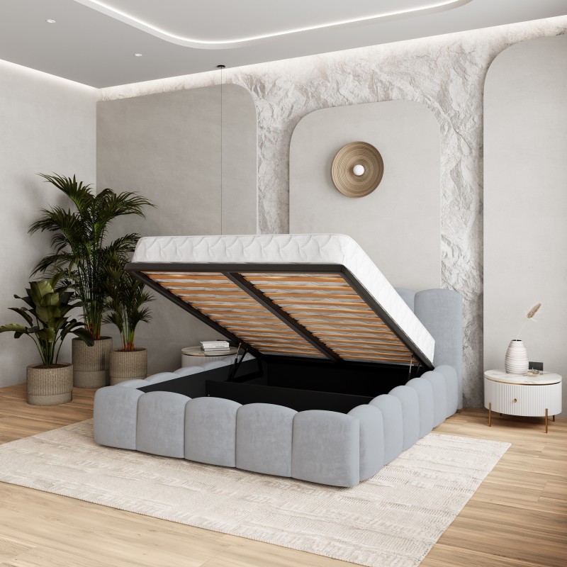 Jedes Detail – vom weichen Bezugsstoff bis zur sorgfältigen Verarbeitung – ist darauf ausgelegt, Ihnen Nacht für Nacht tiefen, erholsamen Schlaf und ein Gefühl von Luxus zu schenken. Nutzen Sie das volle Potenzial Ihres Schlafzimmers dank praktischer Stauraumlösungen. Das Bett ist mit einem aufklappbaren Lattenrost ausgestattet, der von einem zuverlässigen Mechanismus unterstützt wird. Dadurch ist der Zugang zum geräumigen Bettkasten absolut mühelos und komfortabel.