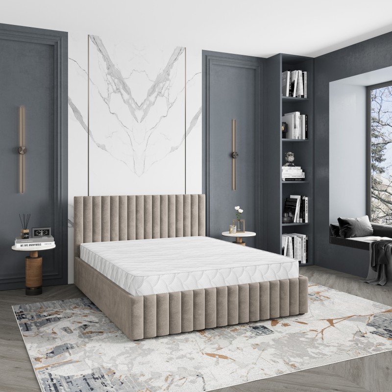 Das Polsterbett CARMIA ist die perfekte Verbindung aus modernem Design und durchdachter Funktionalität. Seine markante, aber harmonische Form wird sofort zum Mittelpunkt Ihres Schlafzimmers und erhöht dessen ästhetischen Standard. Dieses Möbelstück wurde für alle kreiert, die zeitlose Eleganz schätzen und ihr Schlafzimmer in eine Oase der Ruhe und des guten Geschmacks verwandeln möchten.