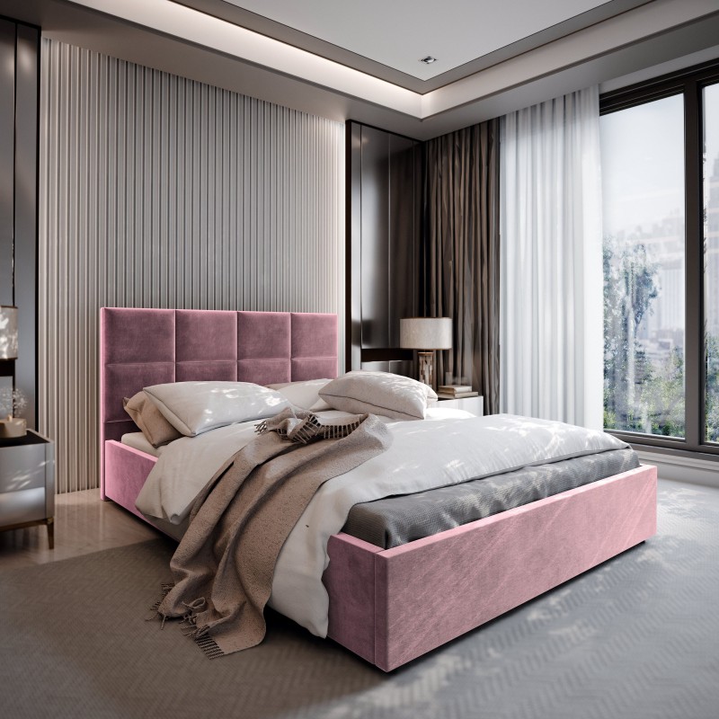 Masseno Polsterbett LIMENA 160x200 cm, Polsterbett mit Bettkästen -Rosa, KRONOS 27