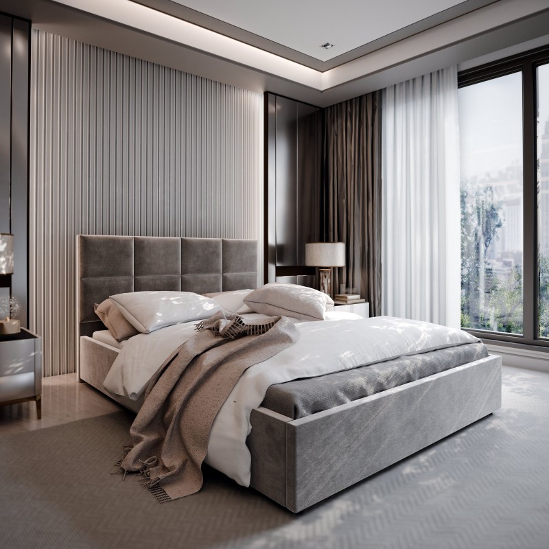 Das Polsterbett LIMENA ist die perfekte Verbindung aus modernem Design und durchdachter Funktionalität. Seine markante, aber harmonische Form wird sofort zum Mittelpunkt Ihres Schlafzimmers und erhöht dessen ästhetischen Standard. Dieses Möbelstück wurde für alle kreiert, die zeitlose Eleganz schätzen und ihr Schlafzimmer in eine Oase der Ruhe und des guten Geschmacks verwandeln möchten.