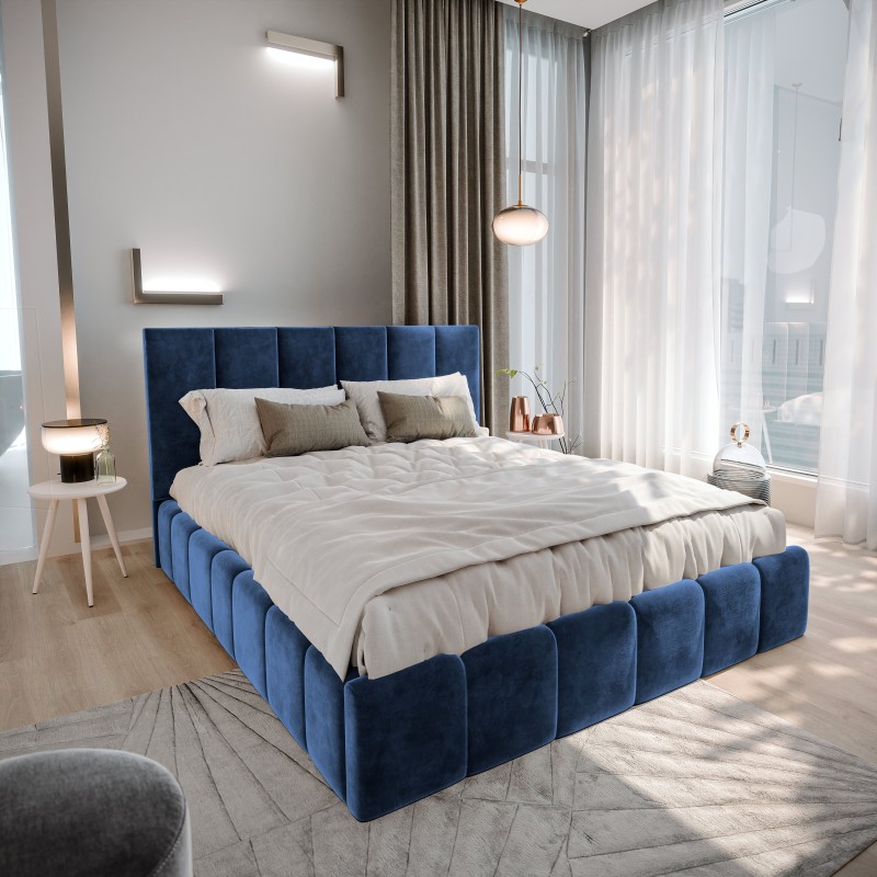 Masseno Polsterbett TARANTO 180x200 cm, Polsterbett mit Bettkästen -Blau, MONOLITH 77