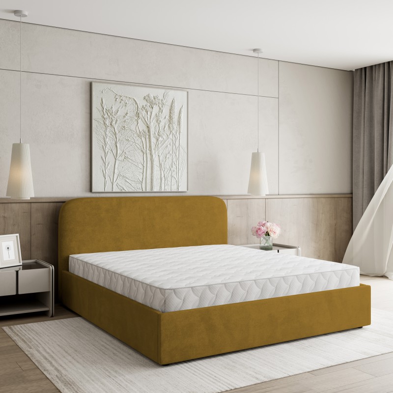 Das Polsterbett RENIVE ist die perfekte Verbindung aus modernem Design und durchdachter Funktionalität. Seine markante, aber harmonische Form wird sofort zum Mittelpunkt Ihres Schlafzimmers und erhöht dessen ästhetischen Standard. Dieses Möbelstück wurde für alle kreiert, die zeitlose Eleganz schätzen und ihr Schlafzimmer in eine Oase der Ruhe und des guten Geschmacks verwandeln möchten.