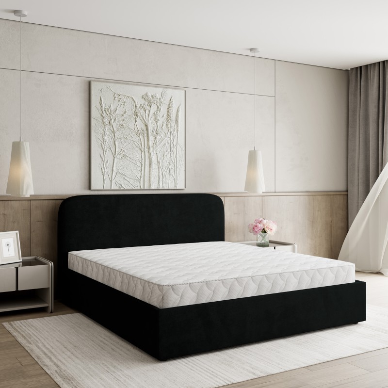 Das Polsterbett RENIVE ist die perfekte Verbindung aus modernem Design und durchdachter Funktionalität. Seine markante, aber harmonische Form wird sofort zum Mittelpunkt Ihres Schlafzimmers und erhöht dessen ästhetischen Standard. Dieses Möbelstück wurde für alle kreiert, die zeitlose Eleganz schätzen und ihr Schlafzimmer in eine Oase der Ruhe und des guten Geschmacks verwandeln möchten.