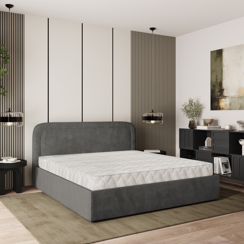 Das Polsterbett BENIRA ist die perfekte Verbindung aus modernem Design und durchdachter Funktionalität. Seine markante, aber harmonische Form wird sofort zum Mittelpunkt Ihres Schlafzimmers und erhöht dessen ästhetischen Standard. Dieses Möbelstück wurde für alle kreiert, die zeitlose Eleganz schätzen und ihr Schlafzimmer in eine Oase der Ruhe und des guten Geschmacks verwandeln möchten.