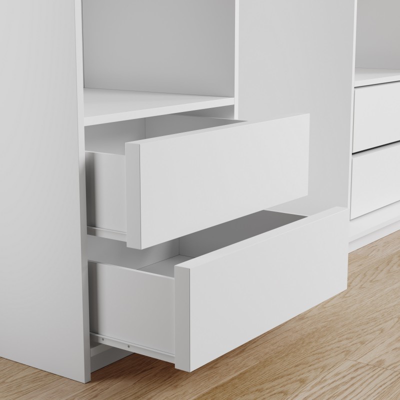 - Der Schrank besteht aus hochwertiger laminierter Platte, was seine Stabilität, Haltbarkeit und Widerstandsfähigkeit gegenüber täglichem Gebrauch garantiert.