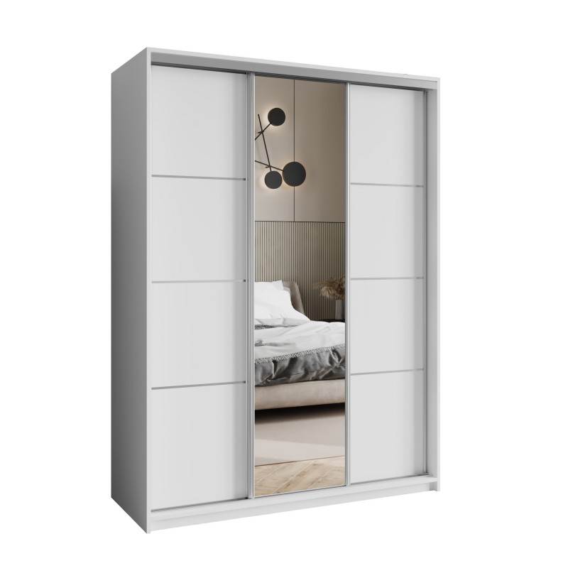 Masseno Schiebetürenschrank VARO 150/205/60cm 3-türig mit Spiegel Weiß