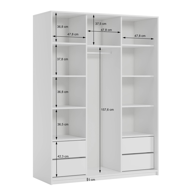 - Dank des verwendeten Aluminiumschiebetürsystems bewegen sich die Schranktüren leicht, leise und problemlos – auch bei häufiger Nutzung. Aluminiumführungen und Rollen zeichnen sich durch hohe Verschleißfestigkeit aus, was bedeutet, dass Ihr Schrank viele Jahre einwandfrei funktionieren wird.