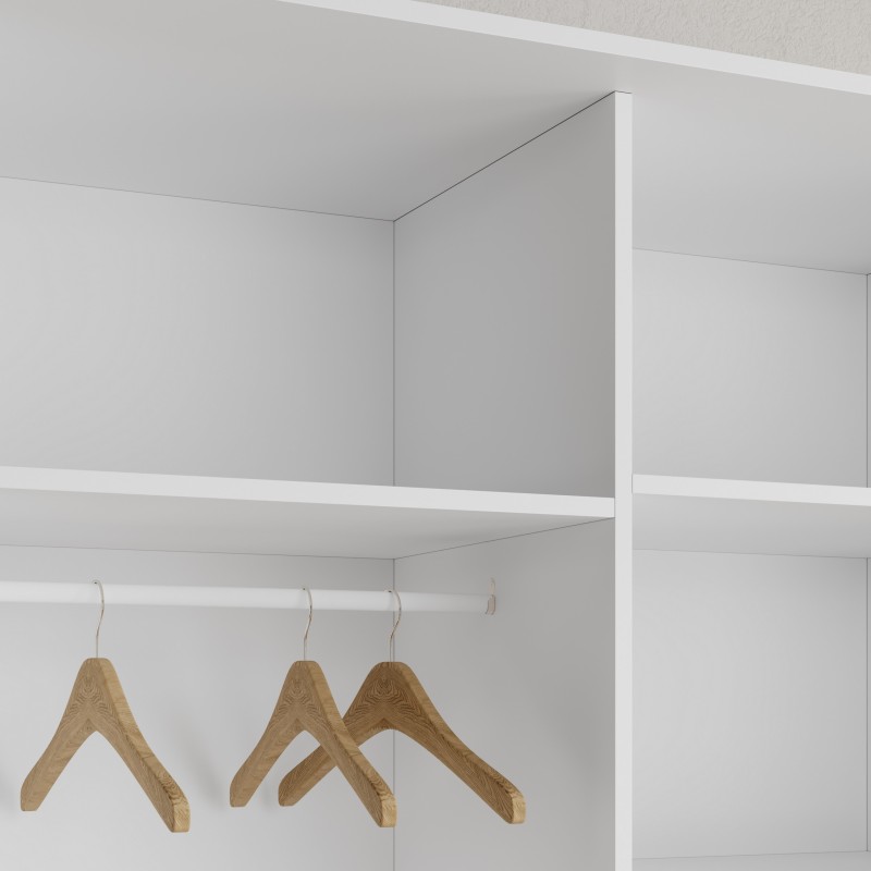 - Das Innere des Schranks ist mit einer soliden Aluminiumkleiderstange mit elegantem Chromfinish ausgestattet, die nicht nur stilvoll aussieht, sondern auch eine hohe Belastbarkeit bietet.