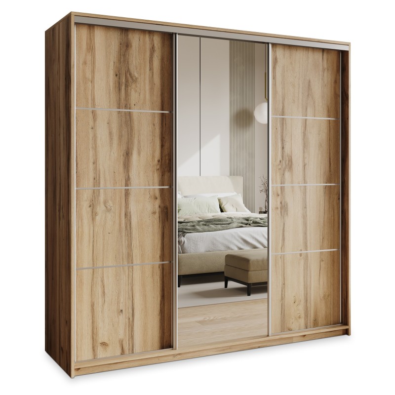 Masseno Schiebetürenschrank VARO 200/205/60cm 3-türig mit Spiegel Eiche Wotan