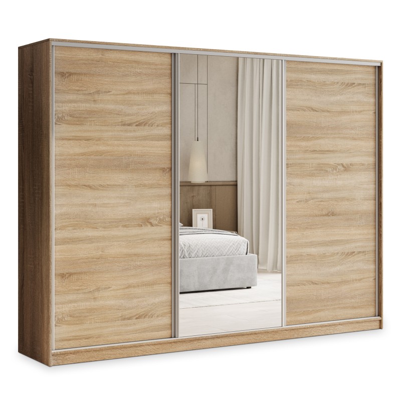 Masseno Schiebetürenschrank TARI 235/205/58cm 3-türig mit Spiegel Sonoma Eiche