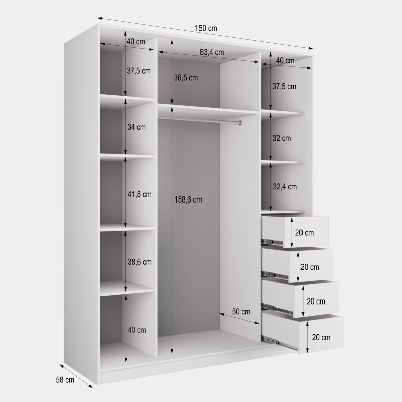 Moderner Schiebetürenschrank mit Spiegel SORE 150 cm – ideale Raumnutzung in Ihrem Zuhause