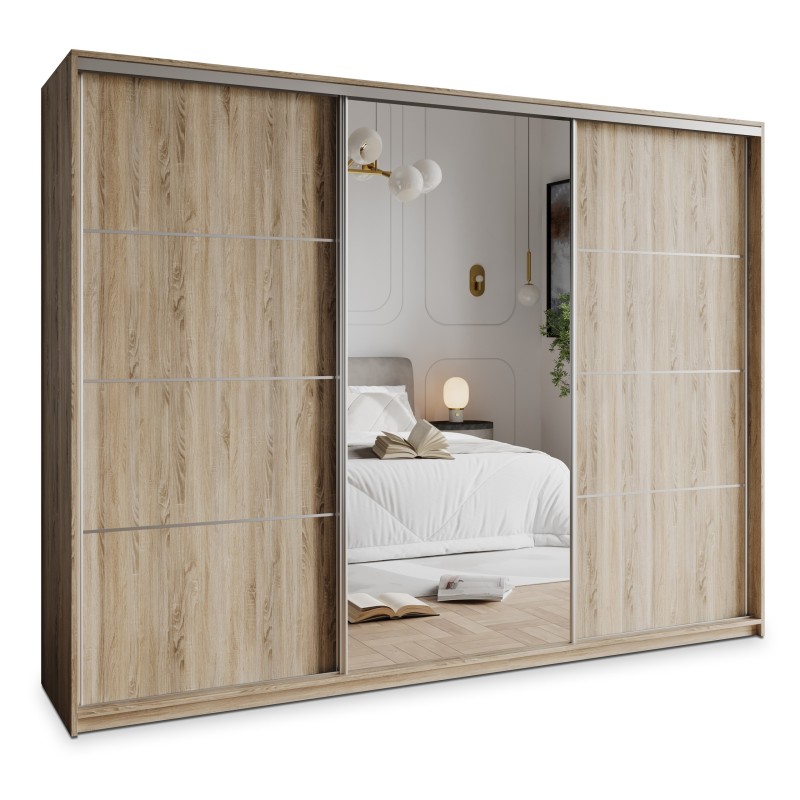 Masseno Schiebetürenschrank VARO 250/205/60cm 3-türig mit Spiegel Sonoma Eiche