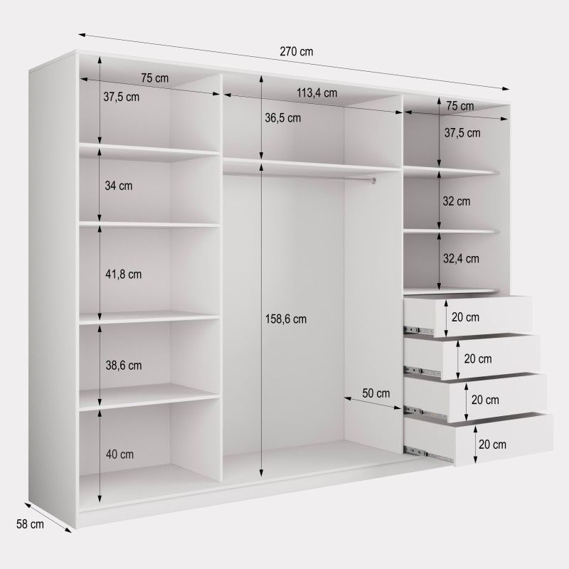Moderner Schiebetürenschrank mit Spiegel SORE 270 cm – ideale Raumnutzung in Ihrem Zuhause