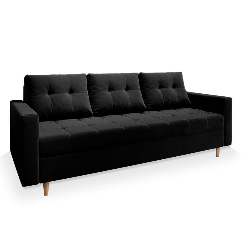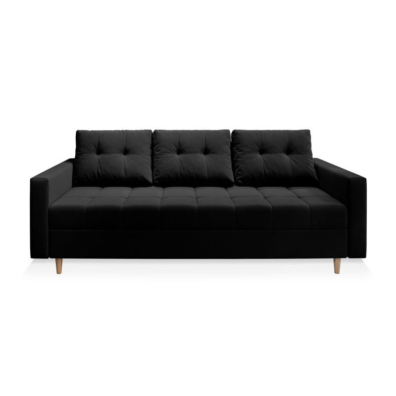 Masseno Sofa MILO mit Schlaffunktion und Bettkasten, Ausziehbares Bettsofa - Schwarz, KRONOS 07