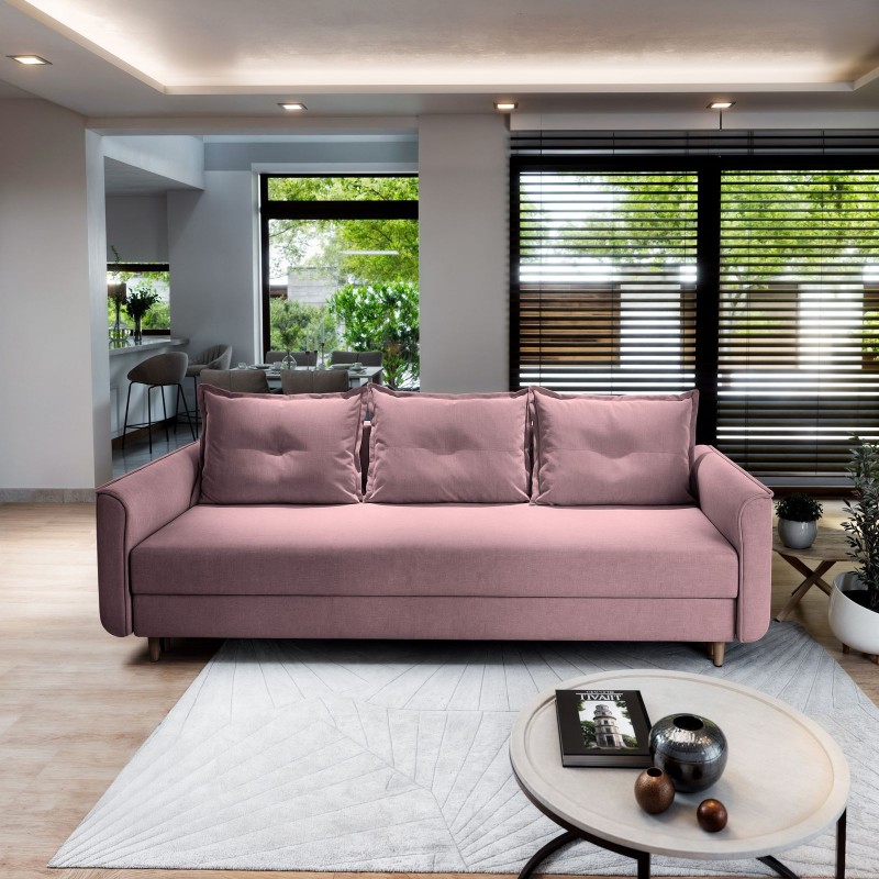 Masseno Sofa NAPOL mit Schlaffunktion und Bettkasten, Ausziehbares Bettsofa - Rosa, KRONOS 27