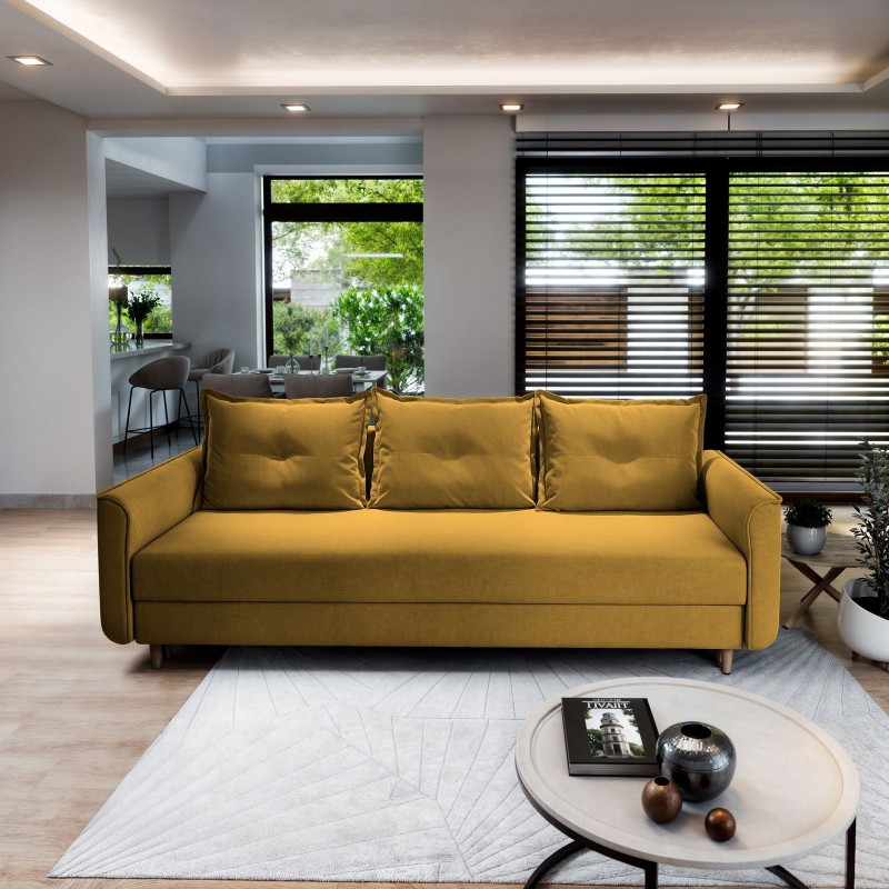 Masseno Sofa NAPOL mit Schlaffunktion und Bettkasten, Ausziehbares Bettsofa - Gelb, KRONOS 01