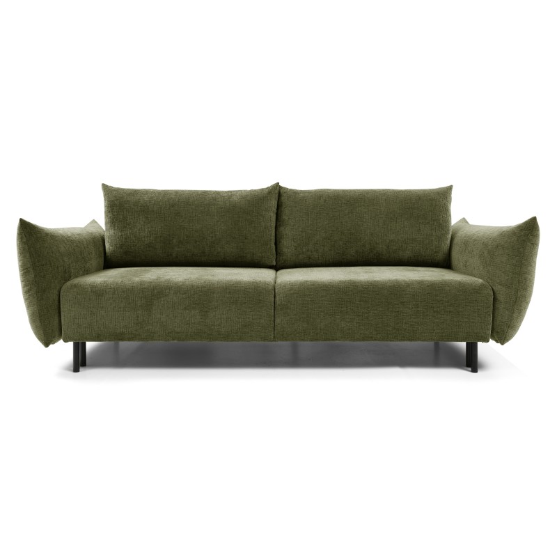 Masseno Sofa UNO mit Schlaffunktion und Bettkasten, Ausziehbares Bettsofa - Grün, OVER THE HORIZON 38