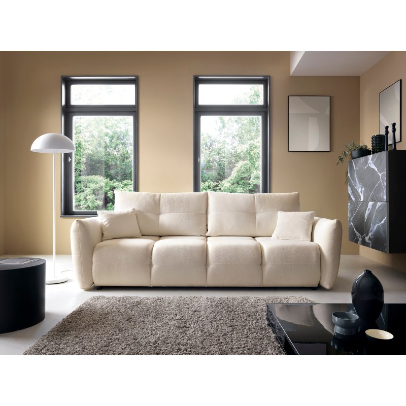 Masseno Sofa MODA mit Schlaffunktion und Bettkasten, Ausziehbares Bettsofa - Creme, SICURO 60