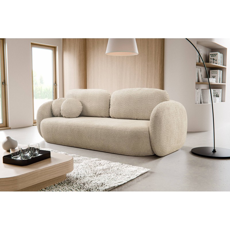 Masseno Sofa AMICO mit Schlaffunktion und Bettkasten, Ausziehbares Bettsofa - Beige, ABRIAMO 3