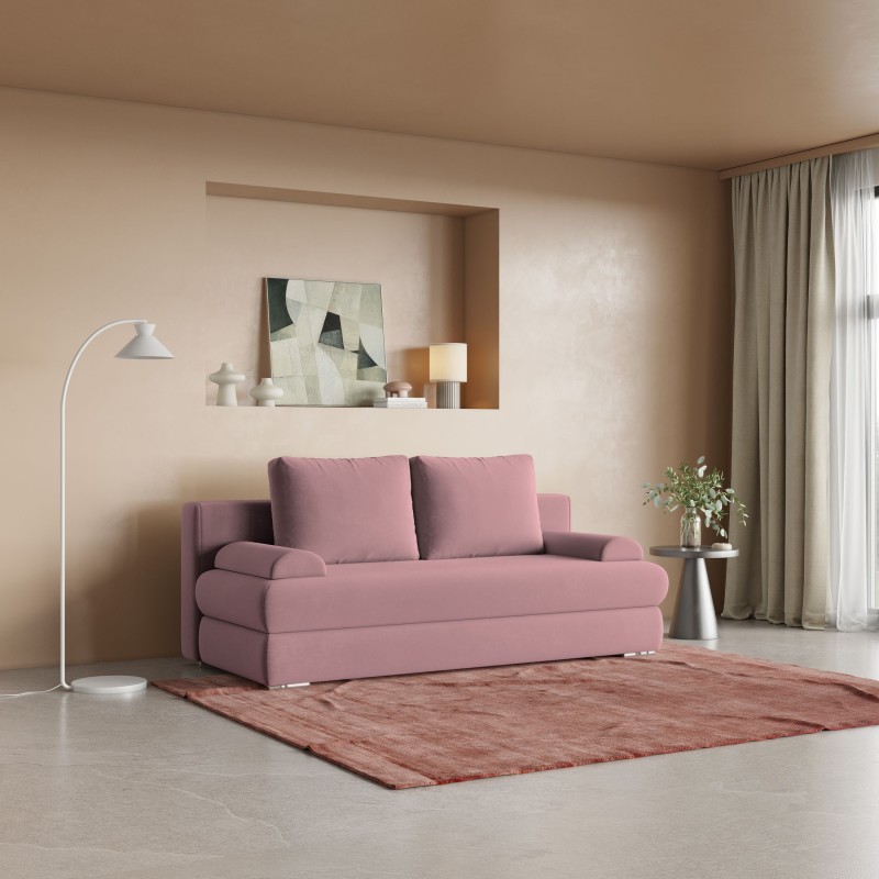 Masseno Sofa ASPERO mit Schlaffunktion und Bettkasten, Ausziehbares Bettsofa - Rosa, KRONOS 27
