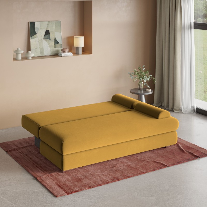 Masseno Sofa ASPERO mit Schlaffunktion und Bettkasten, Ausziehbares Bettsofa - Gelb, KRONOS 01