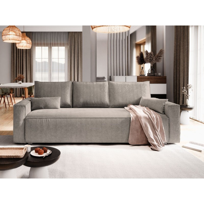 Masseno Sofa MENI mit Schlaffunktion und Bettkasten, Ausziehbares Bettsofa - Beige, POSO 02