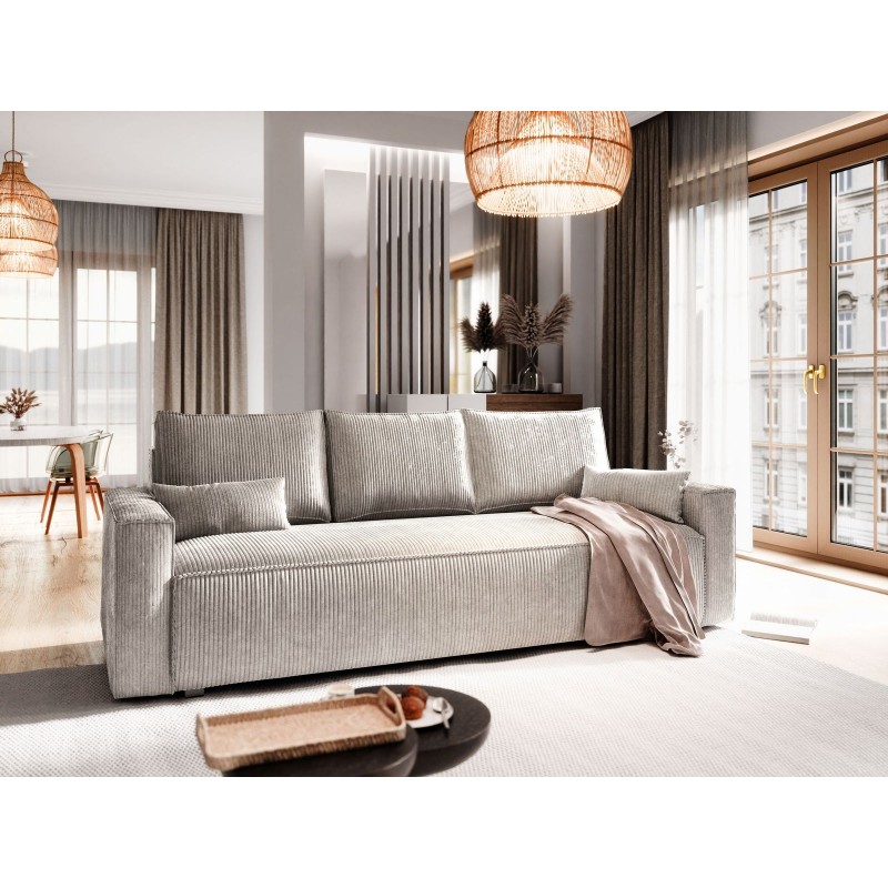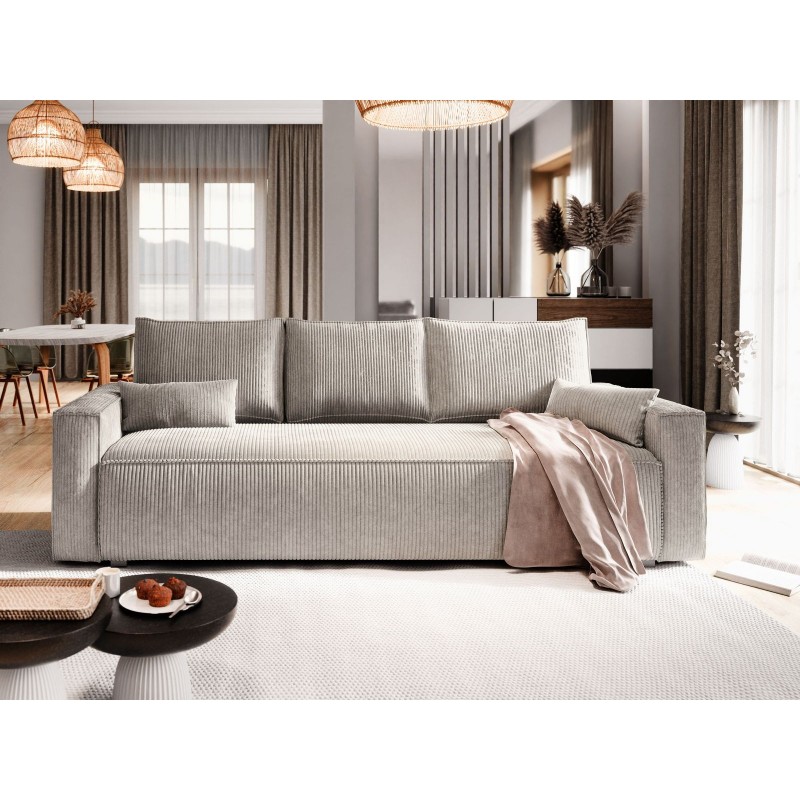 Masseno Sofa MENI mit Schlaffunktion und Bettkasten, Ausziehbares Bettsofa - Creme, POSO 100