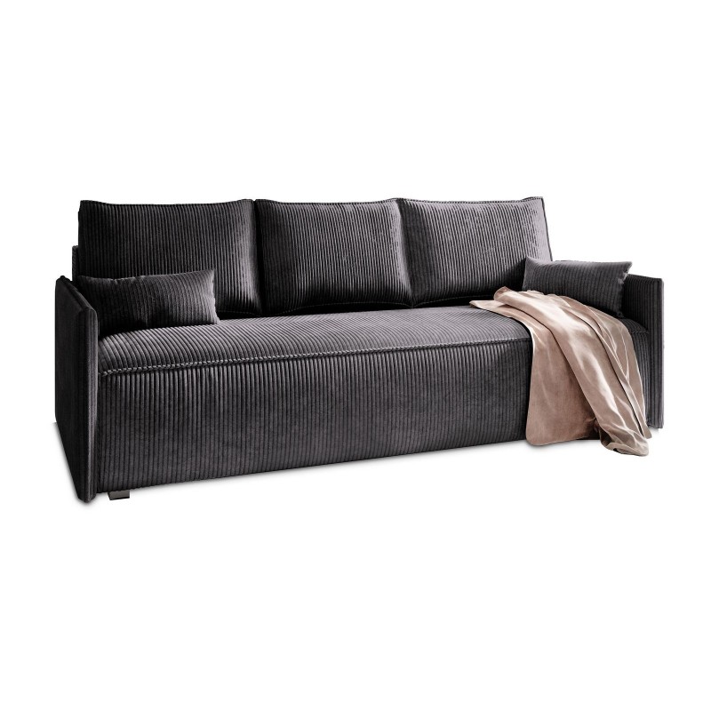 Masseno Sofa MESTOR mit Schlaffunktion und Bettkasten, Ausziehbares Bettsofa - Graphitfarben, POSO 34